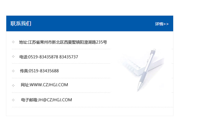 傳真:0519-83435688    郵編:213135    網址:WWW.czjhgj_com.yinpifa.com    電子郵箱:JH@czjhgj_com.yinpifa.com